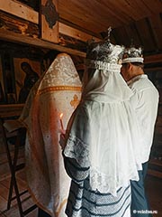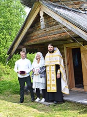 Здесь, на берегу Верхнего Куйтто на историческом месте, называемом Юркелян Тёрмя, в часовне Святых мучеников Маккавеев по благословению епископа Костомукшского и Кемского Бориса молодая пара Дмитрий и Алёна Сподины скрепили свой брак православным таинством венчания. Накануне этого важного события ребята исповедались и причастились. Богослужение для молодой семьи провёл настоятель Петропавловской церкви посёлка Калевала иерей Евгений Коренев. Венчание завершилось звоном колоколов, добрыми напутственными словами и поздравлениями. Отец Евгений пожелал Алёне быть помощницей мужу, заботиться и поддерживать его в трудные минуты, а Дмитрию - беречь и хранить свою семью, быть надёжной опорой и защитой.